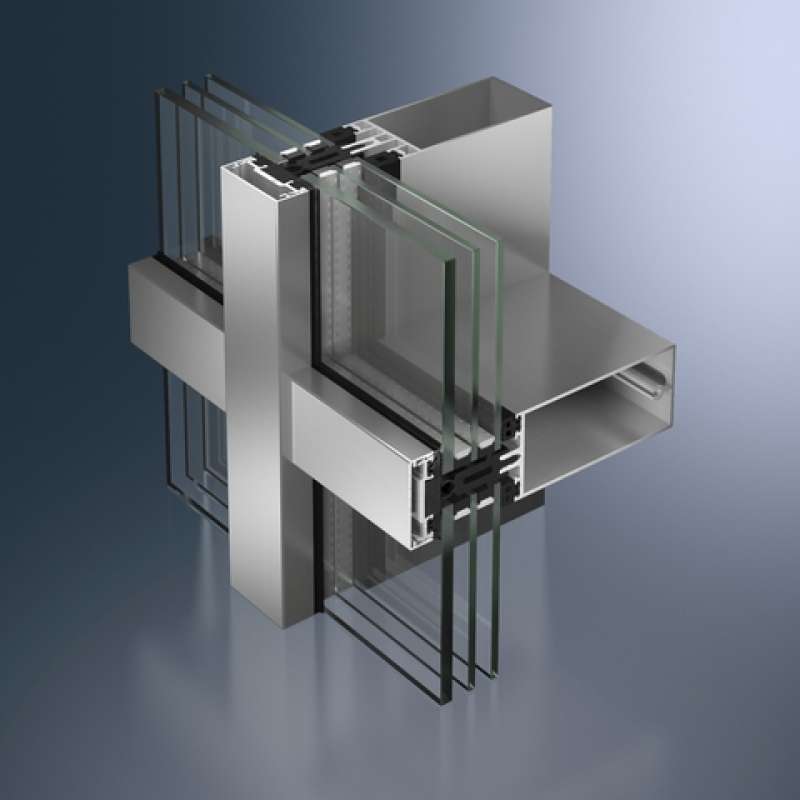 Als Pfosten- / Riegelkonstruktion für mehrgeschossige Fassaden mit einer Innen- und Außenseitenbreite von 50 mm.